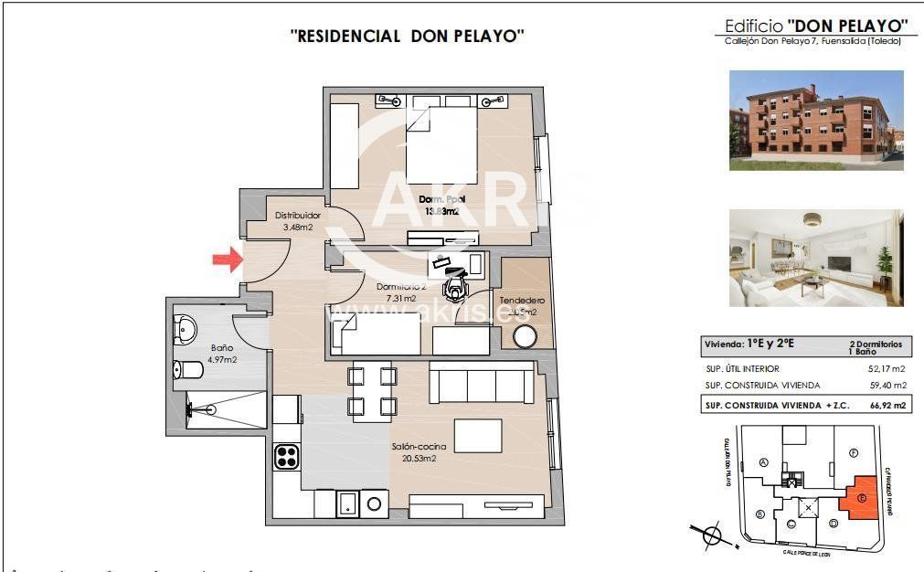 Piso en venta en Fuensalida, con 67 m2, 2 habitaciones y 1 baños y Ascensor.