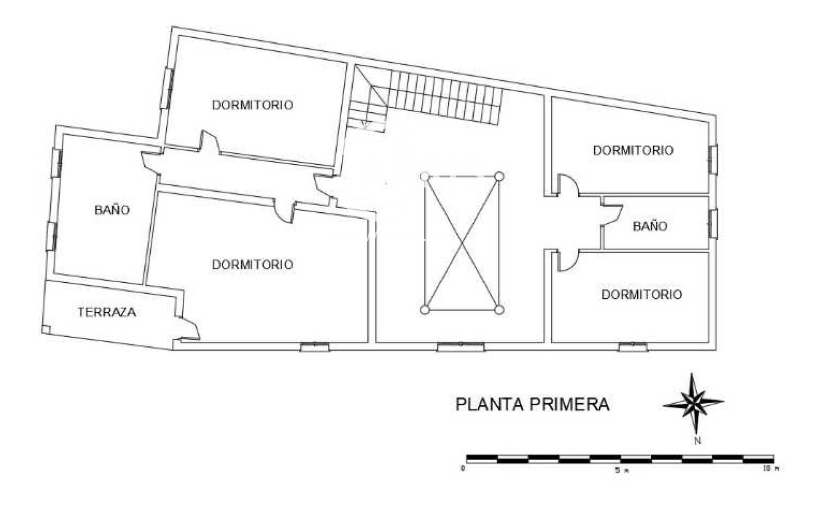 Con un impresionante recibidor/distribuidor, la edificación "abraza" el espacio interior abierto, al estilo de las casas toledanas. El espacio se distribuye en las tres plantas, con seis habitaciones en total, y tres baños completos, con posibilidad de reforma para modificar la distribución a tu gusto.